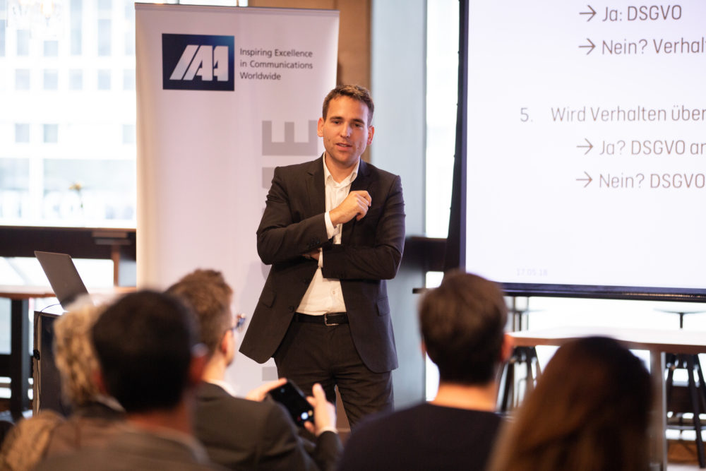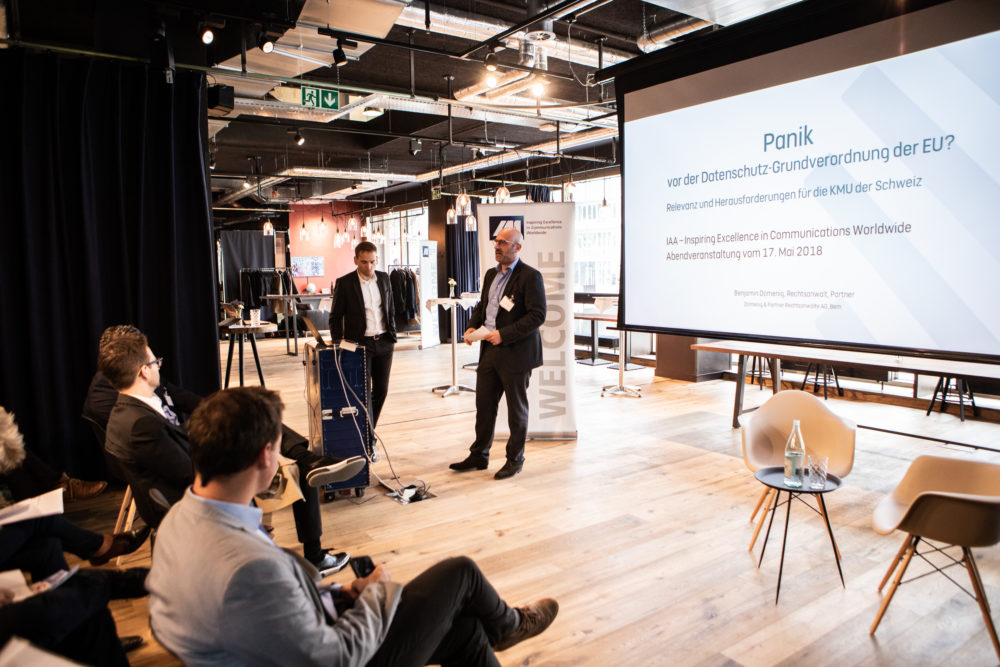 An der IAA-Abendveranstaltung vom 17. Mai sprach der Datenschutzexperte und Anwalt Benjamin Domenig über die Herausforderungen und Herangehensmöglichkeiten und gab Tipps für die Praxis.