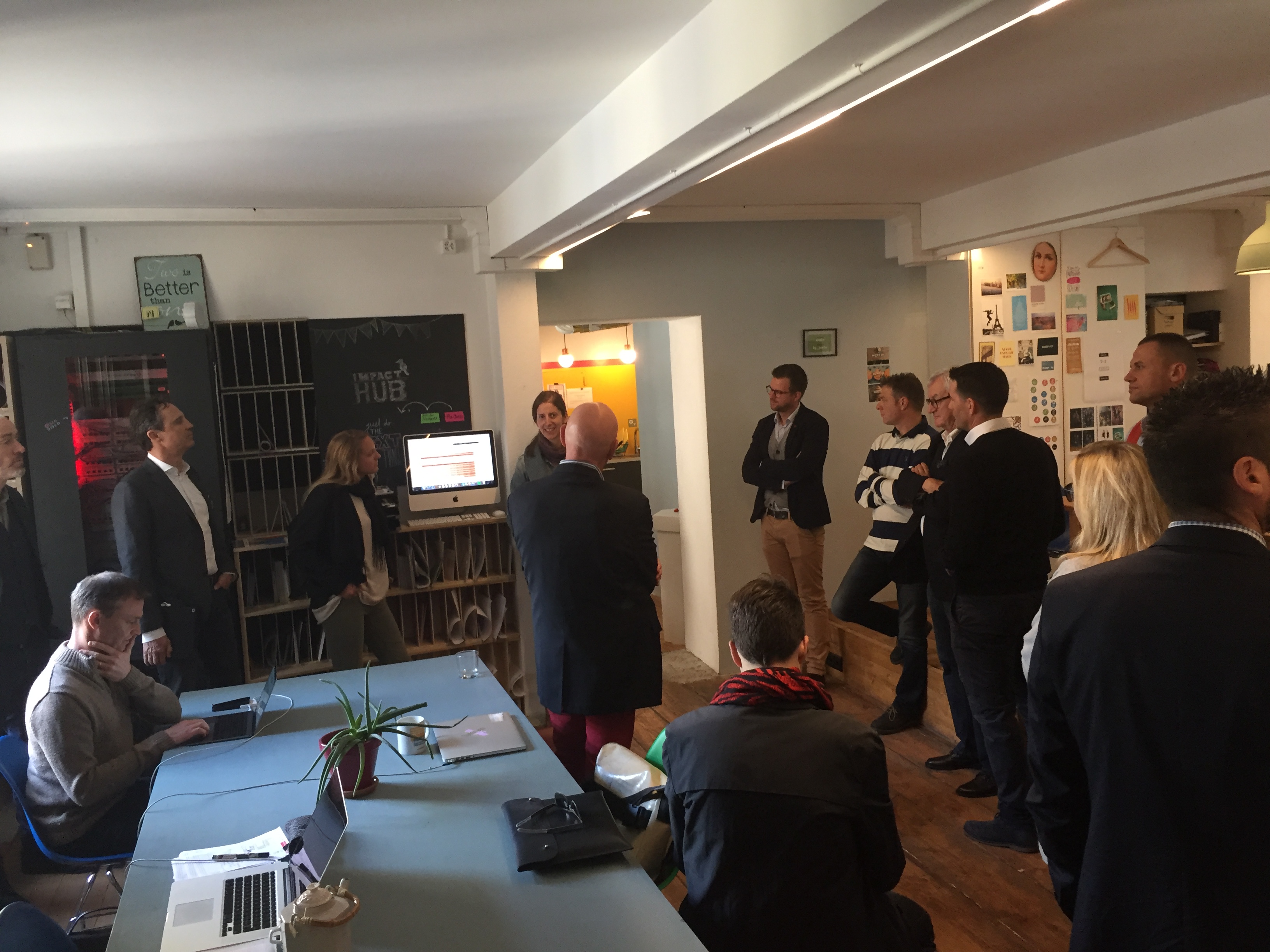 - Gespannte Teilnehmer vor dem Impact Hub