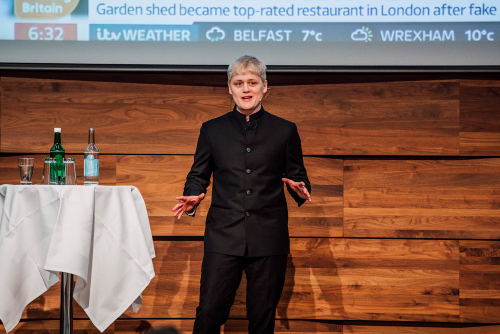 Der bekannte Journalist und mit Preisen ausgezeichnete Filmemacher Oobah Butler begeisterte das Schweizer Publikum mit seinen Fakenews-Stories, die grosse virale Erfolge feierten. So besass der junge Journalist das #1 Restaurant in London (The Shed at Dulwich, the world’s most famous restaurant that never existed) und machte sich als knock-off Fashion Designer Georgio Peviani an der Pariser Fashion Week einen Namen.